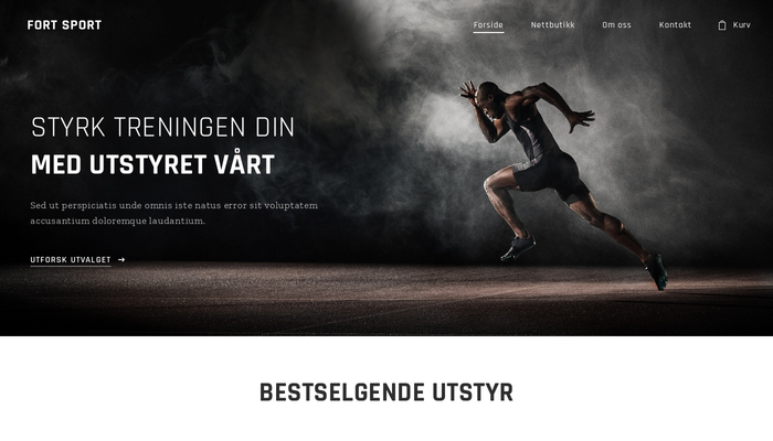 Denne stilige butikkmalen vil hjelpe deg å selge treningsutstyr, treningsklær eller kosttilskudd. Vis dine besøkende alt de trenger å vite om dine produkter og nettbutikken din, og gjør dem om til kunder.