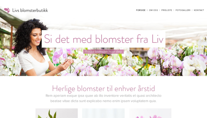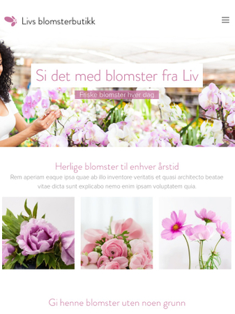 Denne malen er holdt i pastellfarger, noe som gjør den velegnet til blomsterbutikker og lignende forretninger. En ryddig prisliste og et fotogalleri vil hjelpe deg med å lansere virksomheten din på nettet.